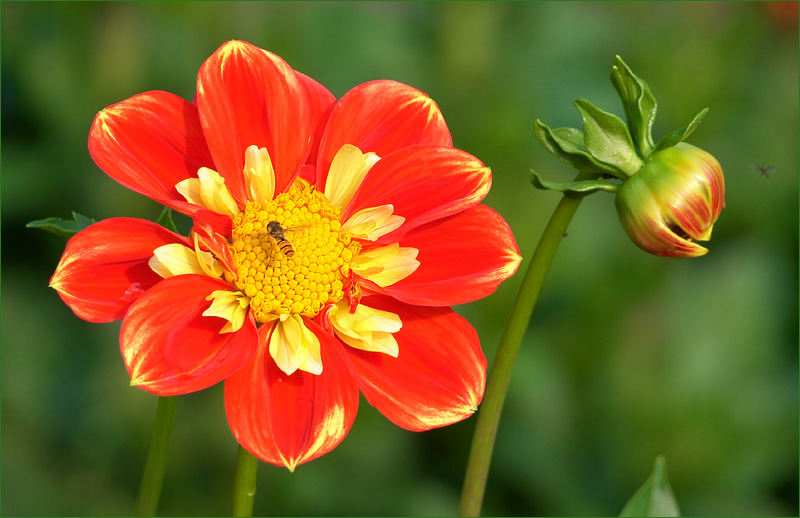 .. sie ist wunderschön, diese Halskrausendahlie, wie ein warmes Lächeln und dann die Knospe dazu - eine Augenweide (für die Seele).
