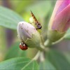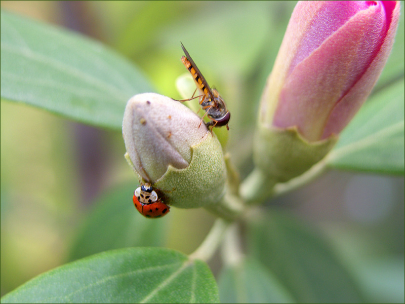 Mit Marienkäfer und Schwebfliege