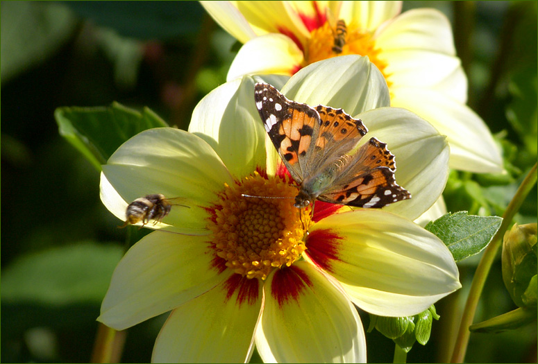 Und noch eine Schwebfliege im Hintergrund. Super.