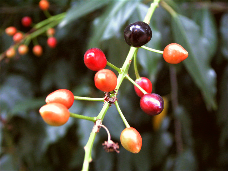 An einem Strauch fotografiert. Man sieht ihren unterschiedlichen Reifegrad.