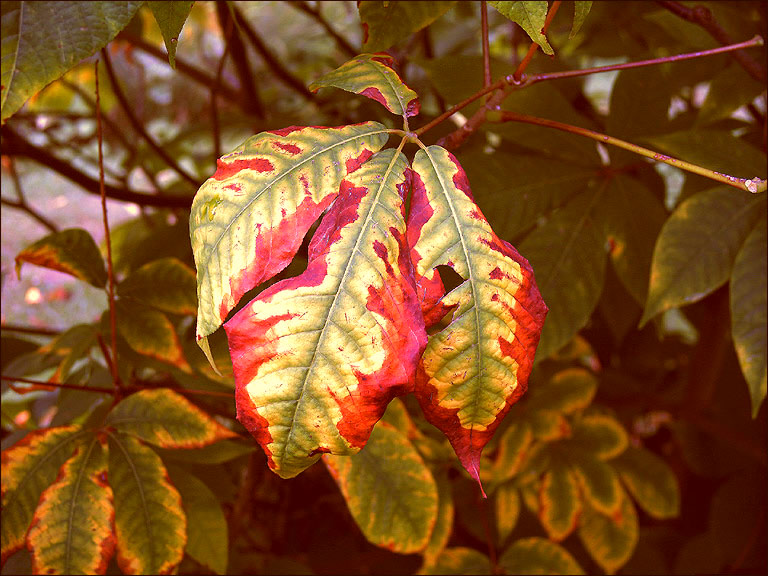 Am kommenden Donnerstag dieser Woche beginnt nach dem Kalender (22. September) der Herbstanfang. Die Blätter an diesem Baum haben ihn heute schon signalisiert.