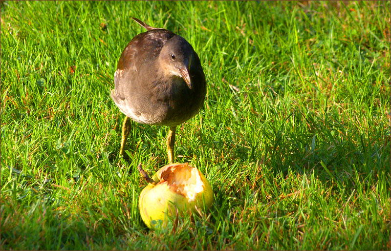 Vitamine für das Teichhuhn. Schön gesehen.