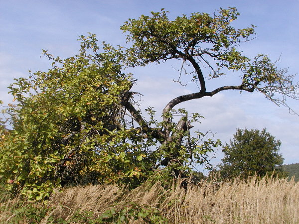 So sieht ein Apfelbaum nach Jahren aus, wenn man ihn nicht mehr "kultiviert". Stürme reißen Äste herab. Aber irgendwo treibt der Baum im folgenden Jahr wieder aus.