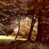 Blick in eine Lichtung. Auf der Wiese laufen oft die Eichhörnchen geschäftig hin und her und vergraben die Nüsse, welche jetzt von den Bäumen fallen, als Nahrungsration für die Zeit ihrer Winterschlafspause ab Mitte November bis März.