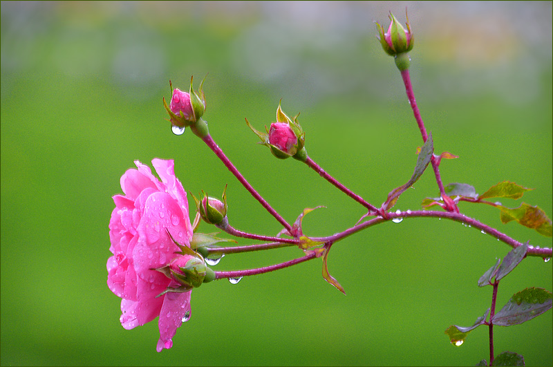 Mit Knospen und Regentropfen