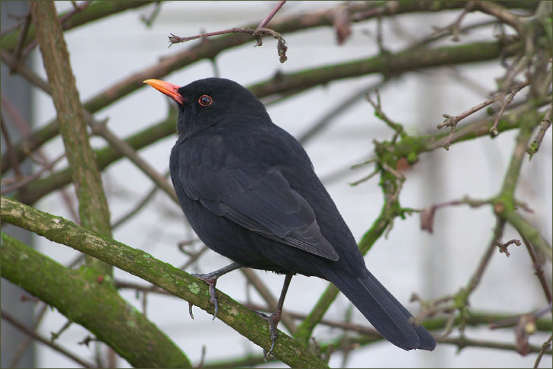 Ein wachsamer prüfender Blick. Schön, das Amselmännchen.