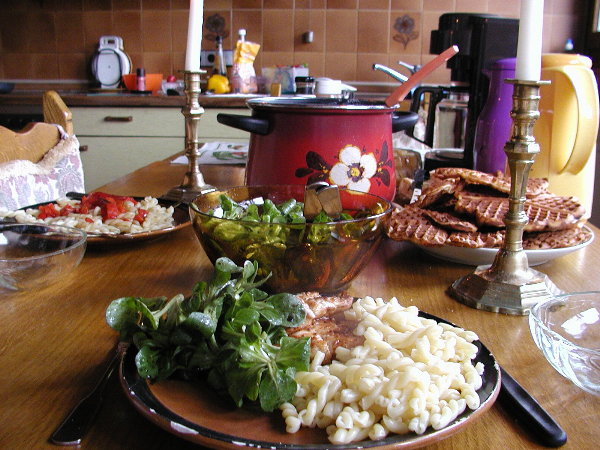 .. also, liebe Omama, das sieht ja lecker aus,ich nehme eine Portion Salat, den esse ich sehr gern.