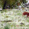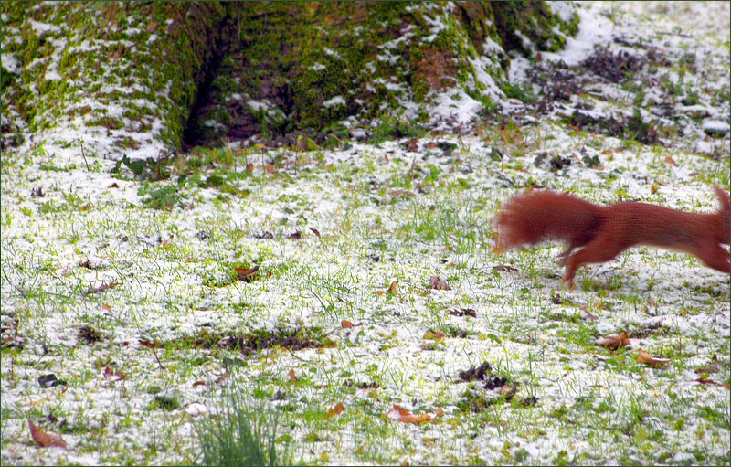 Von diesen Fotos habe ich auch einige. Für Eichhörnchenfotografen müsste eine eigene Kamera erfunden werden, so schnell sind sie. Aber, der Mensch freut sich ja über alles, was ihm gelingt, und wenn es nur der Schwanz vom Eichhörnchen ist.