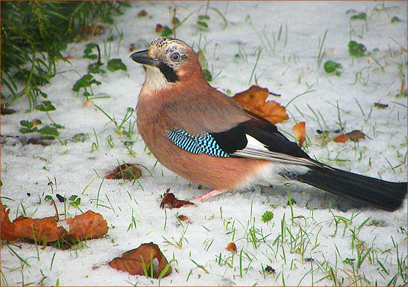 Der Eichelhäher gehört zur Familie der Rabenvögel, ist aber nicht schwarz, sondern sehr bunt. Eigentlich verrät nur seine Stimme ihn als Verwandten von Rabe und Krähe. Er ist deutlich kleiner als die Krähe und sein Körper überwiegend rötlich-braun gefiedert. Außerdem ist der Eichelhäher ein begabter Geräusch- und Stimmenimitator.
