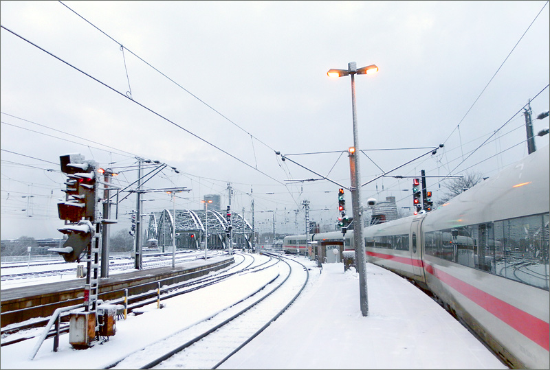 Bahnausfahrt vom Hauptbahnhof zur Hohenzollernbrücke über den Rhein