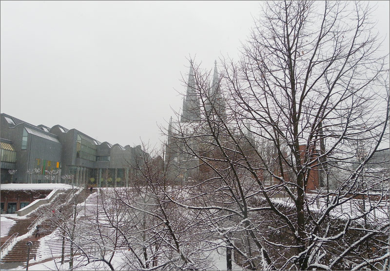 Die Treppe vom Rhein zum Dom, links das Museum Ludwig