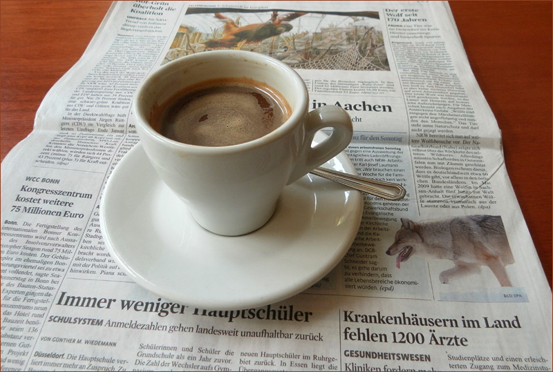 Nach der Morgenwanderung dann eine Tasse Kaffee zur Lektüre der Morgenzeitung