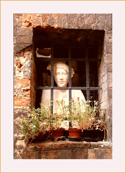 Eine Frauenskulptur im Fenster. 1995 in Florenz aufgenommen. Ich blieb fasziniert vor diesem Fenster stehen und musste es einfach fotografieren, nicht nur als ein *touristisches Erinnerungsfoto* aus Italien...