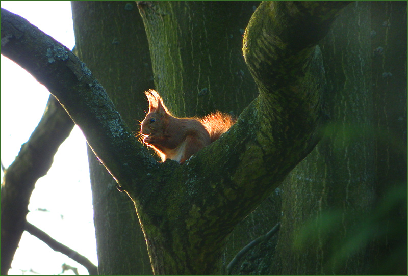 Ein Eichhörnchen vom Sonnenlicht durchfluted, wie schön.
