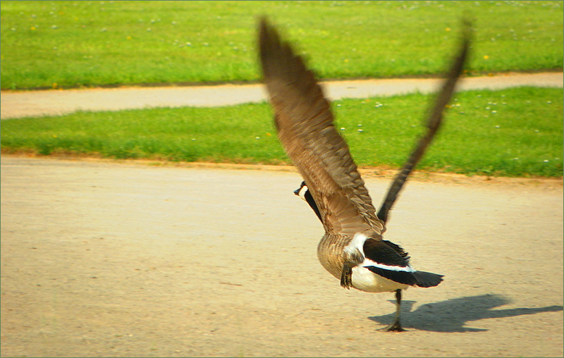 Er hat sich ja ein schönes Start- und Landeplätzchen ausgesucht. Er hat wenigstens immer eine Flugerlaubnis, auch wenn Aschewolken in der Luft sind. Ein Foto für eine Fluggesellschaft.