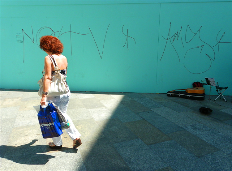 meinst Du, dass die fotographierte Frau den Rubel rollen lassen will?