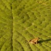 Sicher auf einem großen Blatt. Was wird eigentlich aus den Blättern? Wahrscheinlich erfrieren sie im Winter bei (strengem Frost). Seerosenblätter wachsen im Frühjahr auch wieder neu.