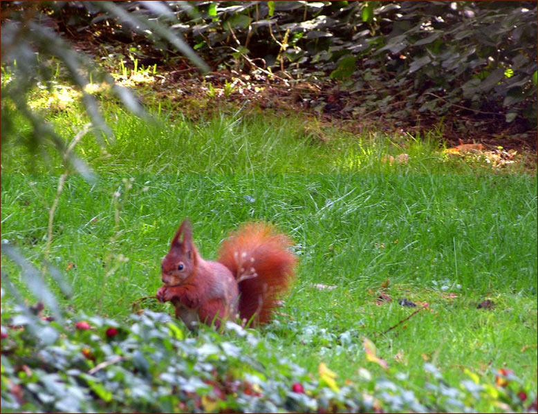 Es pflückt sich gerade die roten Beeren zum Frühstück...
