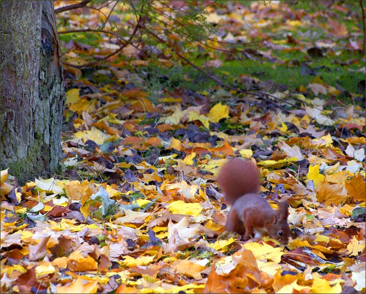 Die Eichhörnchen sind entsprechend ihrer Fellfarbe ganzjährige Herbstboten.