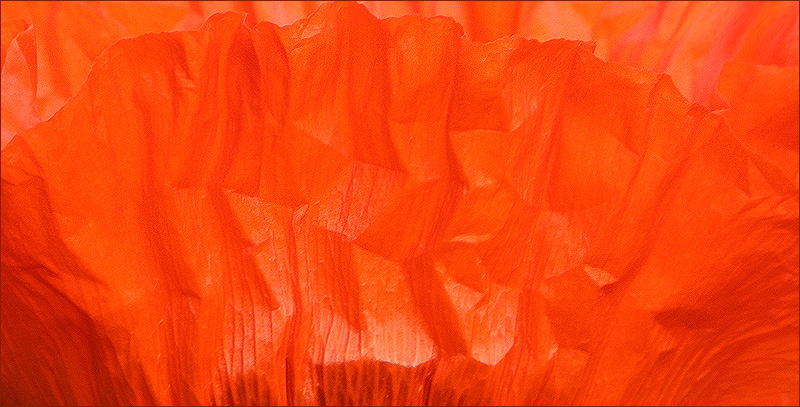 Wunderbar wie das Licht die Transparenz des Blütenblattes mit seinen Srukturen und die teils sehr geometrisch wirkende Faltung, in zarten Farbnuancen sichtbar macht.