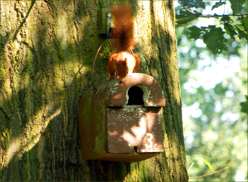Ein Eichhörnchen sucht Vogeleier zum Frühstück