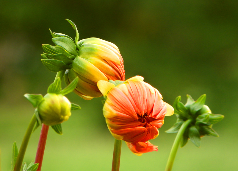Ob als Knospe oder aufgeblüht, Dahlien sehen immer interessant aus. Schön fotografiert.
