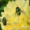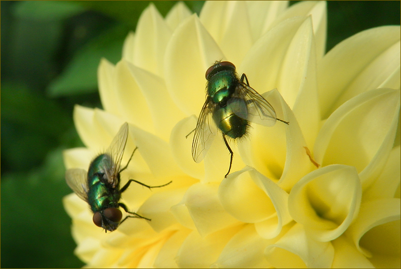 Auf Blüten sehen die Goldfliegen wunderschön aus