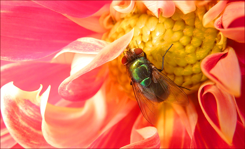 die Schönheit der Fliege kommt hier wieder sehr gut zu Geltung, ein tolles Foto.