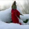 Heute hat es in Köln auch geschneit, etwa 5 cm. Er blieb bei 0 Grad auch liegen. Das rote Alpenveilchen sieht aus wie eine Weihnachtsmann-Vogelscheuche.