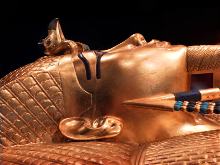 Tutanchamuns Sarkophag mit der goldenen Totenmaske. Er lebte von 1332 - 1323 v. Chr. und starb im Alter von 19 Jahren unter bisher ungeklärten Umständen.