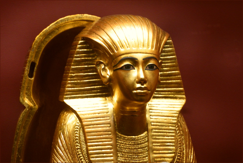Ein kleiner Sarkophag aus dem goldenen Kanopenschrein der Schatzkammer.
