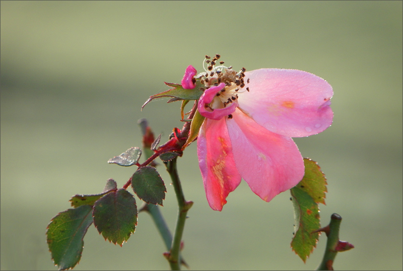 Letzte Blütenblätter im Morgenlicht