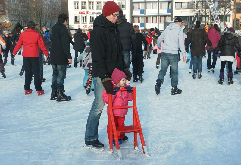 als ich selber noch ganz klein war, ging Mutter, die nicht Schlittschuh laufen konnte, mit mir auf die Eisbahn. Bewusst kann ich mich nicht mehr erinnern, aber eins ist klar: Geschadet hat es mir nicht, und gelernt habe ich es dabei auch. Sogar recht gut. Mutter nur ein wenig, aber immerhin...