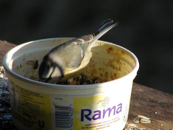 Im Übrigen esse ich schon lange keine Rama mehr, nur noch echte Butter, der Vorteil der Ramadose ist, sie gibt keine Glasscherben, wenn eine stürmische Amsel sie hinunter wirft...