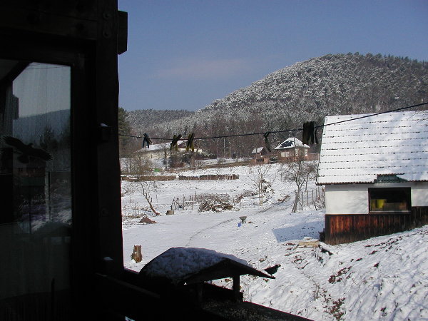 doch ein Herz schlägt warm am Futterhäuschen, ein kleiner Vogel, vielleicht ein Meislein, sucht Futter