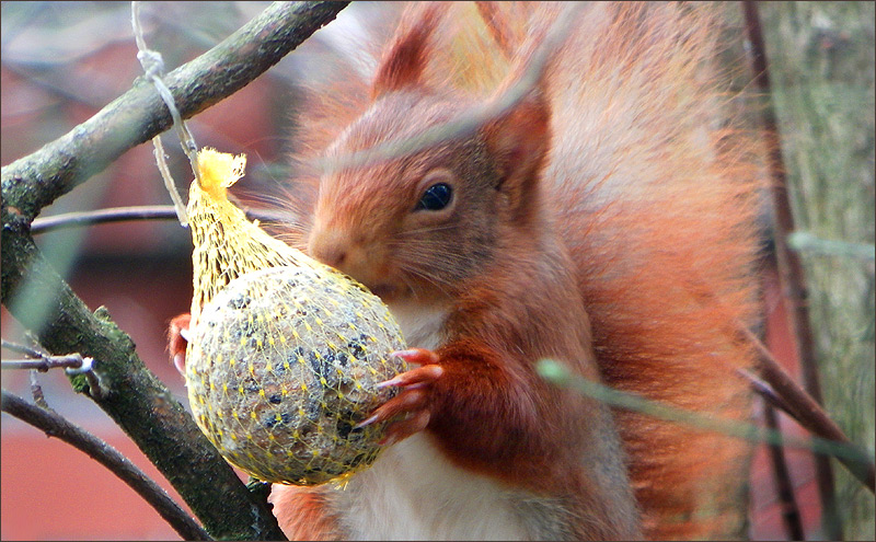 Futterstelle entdeckt ... ein glückliches Eichhörnchen ...