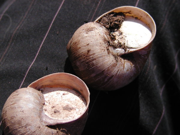 Die Weinbergschnecken haben noch Winterpause (unter dem weißen Deckel haben sie sich in ihr Schneckenhaus zurückgezogen), darum habe ich sie schnell wieder nach dem Fotografieren in ein vor Frost geschütztes Versteck untergebracht. Sie warten wie ich auf den Frühling.