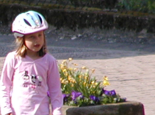 ein Mädchen mit Schutzhelm fürs Fahrrad-Fahren.
