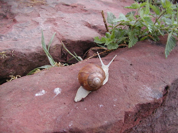 Schön deine Schneckenbilder, sie rettet sich ins Grüne