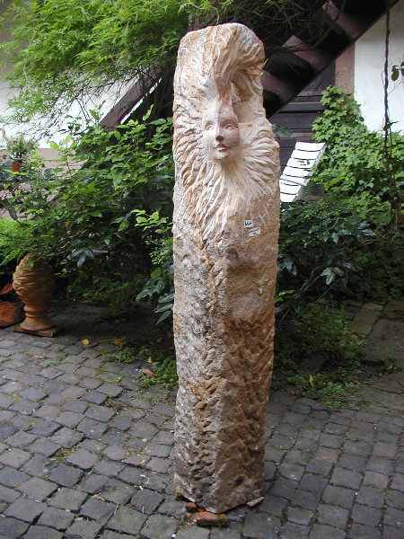 Bildhauermeister Thierry Gangloff schuf aus einem Alten Wingertstein (Buntsandstein) dies schöne Gesicht.