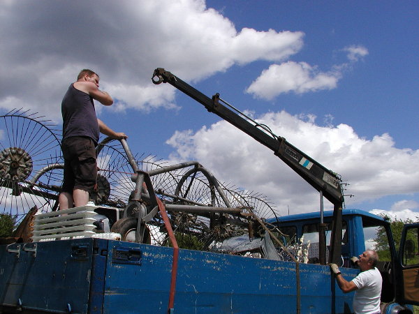 Vergangenheit, der Heuwender reist auf den Schrottplatz