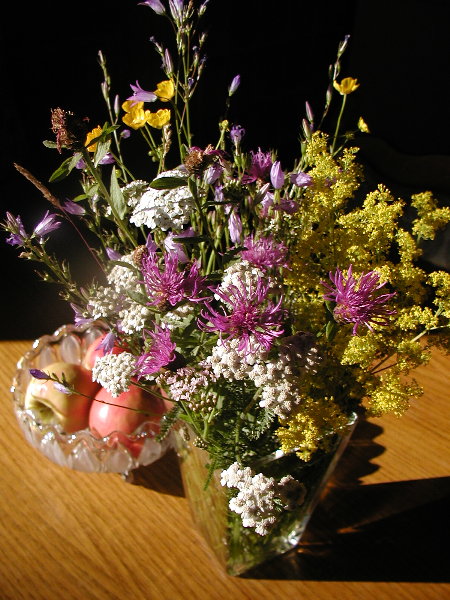 Gestern beim Spaziergang auf der Apfelbaumwiese gepflückt, mit Mädelsüß und Glockenblume