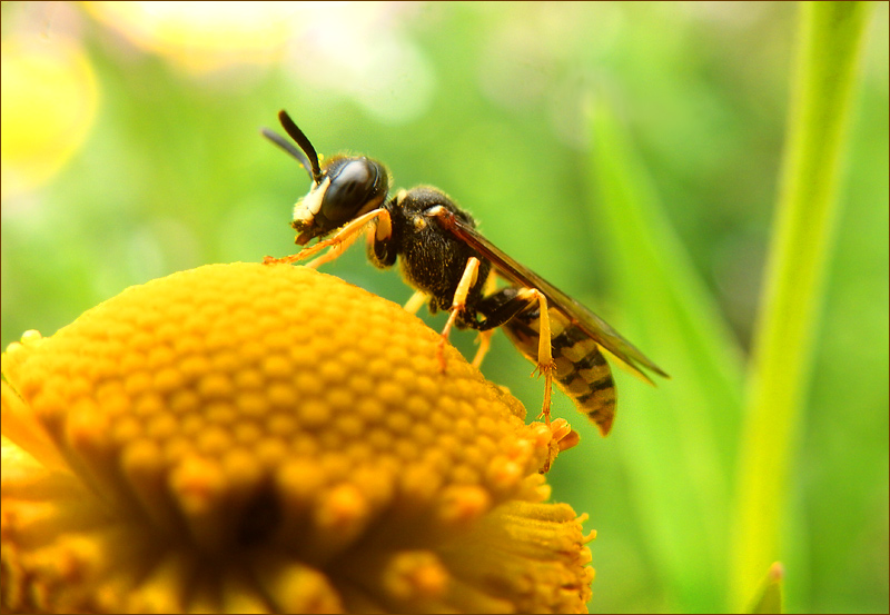 Und eine kleine Wespe ... ganz groß. So sieht man sie sonst nie.