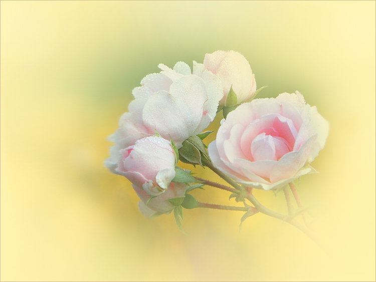 ...meine Lieblingsrose aus der Serie als ein verwunschener Traum, fedrig weiß-rose´ inmitten einer Wolke aus sanftmütigem Nichts, so stelle ich mir seelische Reinheit vor, oder wenn die "Seele gestreichelt wird", es wirkt so "unschuldig" schön...