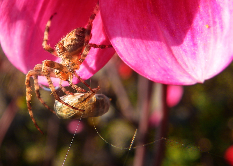 Mit eingesponnener Beute