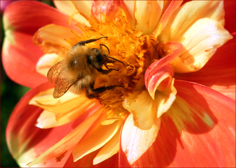 Golden und warm - die Hummel mit ihrem weichen, strahlende Flaum ergänzt dem Auge die Lebendigkeit, die Wärme und Schönheit dieser Schöpfung