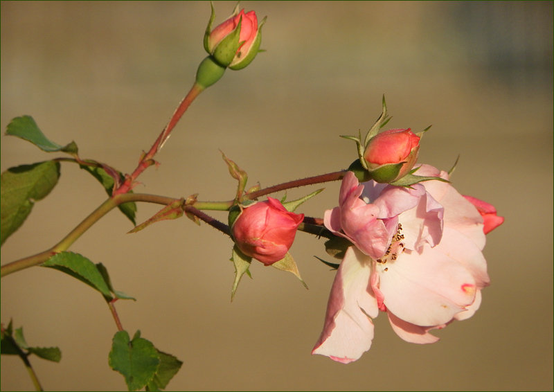 ich war wieder einige Zeit nicht da...und wurde von einer einzelnen zartrosa Rosenblüte begrüßt, die jetzt noch im Spätherbst erblüht ist. Über den Anblick habe ich mich wirklich gefreut.