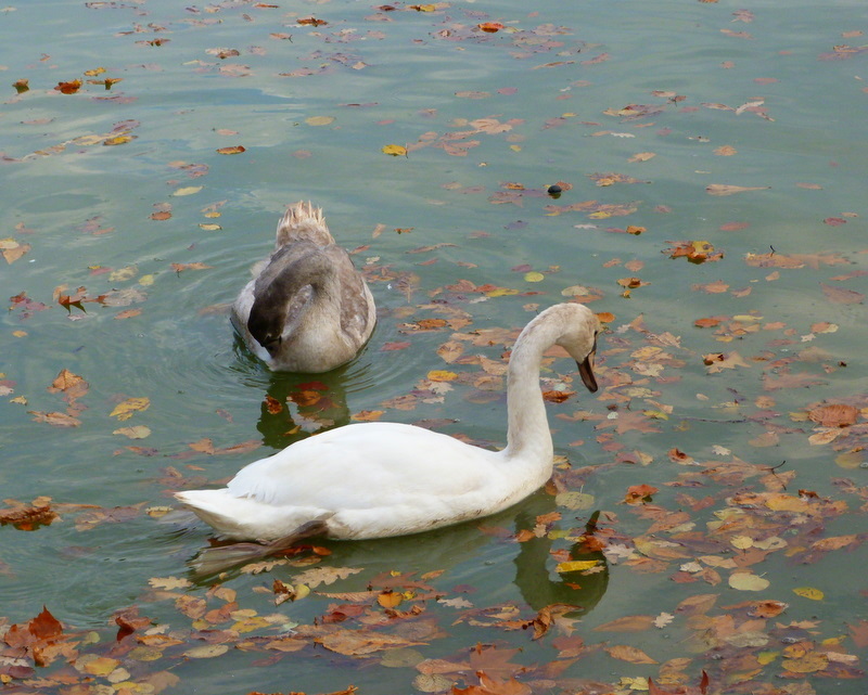 Der vordere hat schon die weiße Farbe des Gefieders angenommen