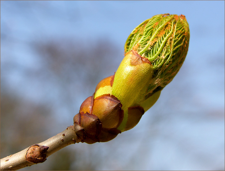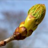 Der Blattaustrieb am Kastanienzweig.