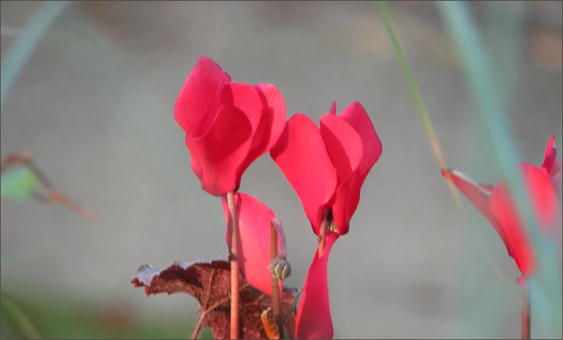 Vor kurzem waren auch einige Alpenveilchen hier gezeigt, die im Garten blühten, daraufhin stelle ich meinen Topf auch vor die Tür und konnte dann gerade noch die Hälfte der Blüten vor dem Erfrieren retten....so ganz erklären kann ich es mir nicht, weshalb die Blüten in Köln draußen wachsen, auch zu dieser Jahreszeit.